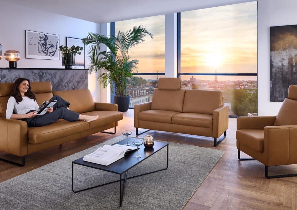 Die Polstergarnitur bietet eine neue Dimension von Freiheit und Geborgenheit. Das haben Sie gesucht? Dann kombinieren Sie doch in Sofas und Sesseln die vielfältigen Ausstattungs- und Funktionsmöglichkeiten mit unseren innovativen Ledern oder Bezugsstoffen. Sie werden sehen: Beide Lebensgefühle werden auf meisterhafte Weise miteinander vereint.