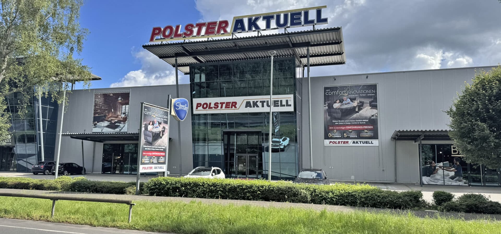 Ihr Polster Aktuell-Verkaufshaus in Hanau, direkt an der A66, Ausfahrt Erlensee / Hanau Nord.